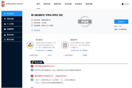 登录教育部全国青少年普法网//qspfw.moe.gov.cn/index.html(用户名:手机号,初始密码:手机号后六位),开始学习和测验。
