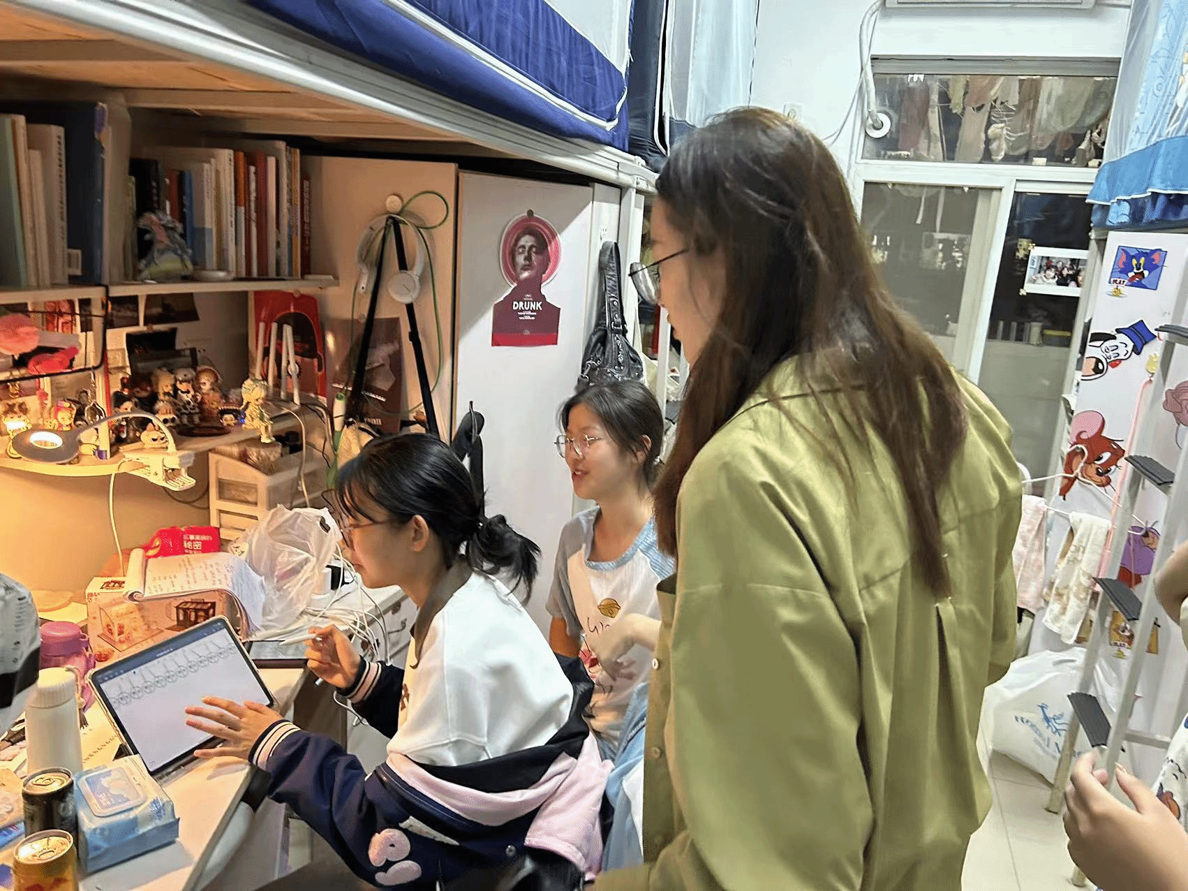 刘爽、刘晗悦、周桎宏、罗乔美、万心怡五位老师前往犀浦校区本科生宿舍进行走访。各位老师来到宿舍与同学们亲切交谈,刘爽老师叮嘱大四同学注意身体,合理规划就业、考研、考公安排。刘晗悦老师来到大一新生宿舍关心了同学们的假期学习情况,并叮嘱大家调整好学习心态。