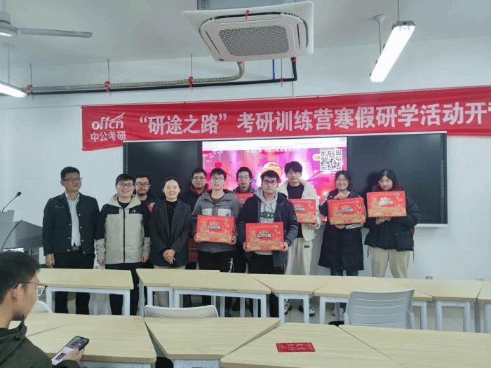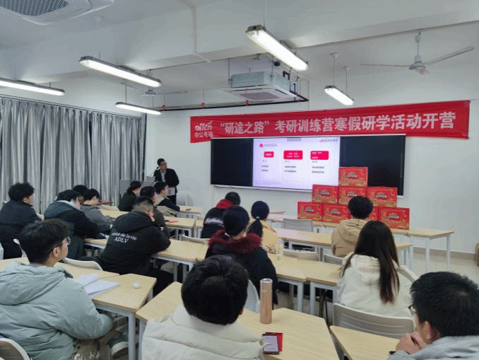 紧接着,中公教育蒋亚东老师向同学们细致介绍了本次寒假研学活动的内容。蒋老师首先向大家展示四天研学活动的具体规划,并将参与同学划分成小组,安排组长全程学习陪伴以及辅助课程规划。随后,蒋老师介绍了研学活动中的三位授课教师。在介绍完基本情况后,蒋老师为同学们展示了研学活动的具体时间轴及课程表,并说明课堂纪律的相关问题,提醒大家端正态度,严肃上课。