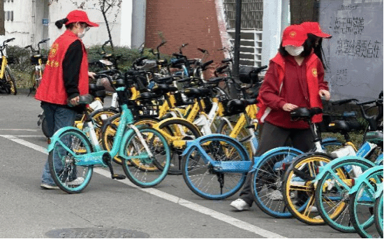 青年志愿者协会的组织下,10名志愿者集结于西南交通大学北区四食堂前,协同开展“共享单车整理”劳动实践活动。志愿者们准时集合,穿上统一马甲,戴好标志性红帽,按照预先分配好的任务,有条不紊地开始对乱停放的共享单车进行重新排列与归置,以恢复通行秩序,确保行人安全。