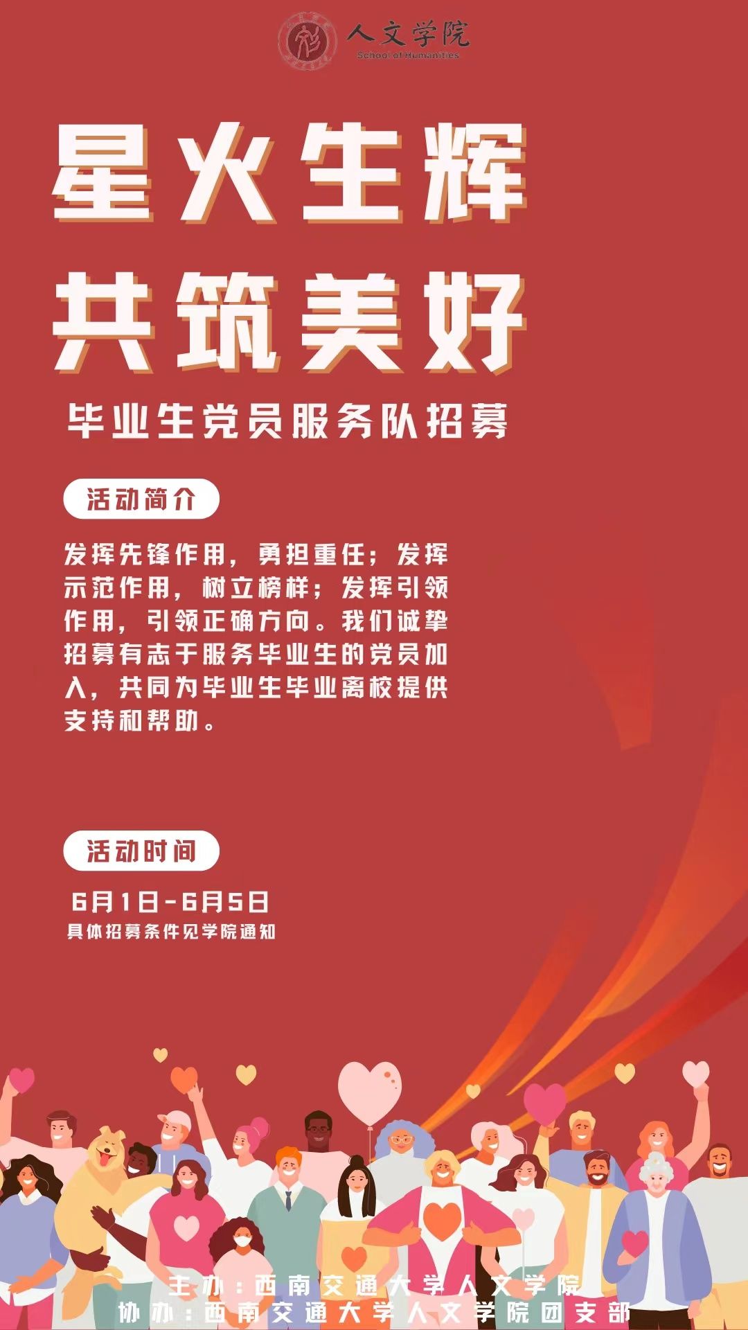 广大学生党员、团员青年、学生骨干要强化担当,发挥模范带头意识,开展一次经验分享、志愿服务等等,以服务和奉献精神站好最后一班岗。离校后更要牢记母校的栽培与教导,以更加高昂的斗志和宽广的胸怀去拥抱未来。