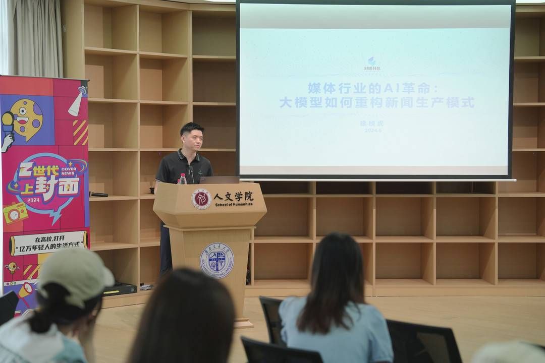 活动中,徐桢虎就大模型带来的新时代、大模型与媒体业务流程如何融合、融媒大模型的核心场景和应用案例和未来媒体的新机会与挑战四个方面,为同学们解析了大模型对媒体行业的深刻影响。