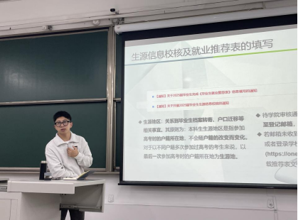 的就业形势进行了深入剖析。他特别介绍了全国高校毕业生毕业去向登记与网上签约平台的使用方法,包括毕业去向的登记流程、生源信息的校核以及就业推荐表的填写等关键环节。同时,周老师还总结了应届生就业求职的多种机会,普及了国家和学校的就业政策,并着重强调了就业安全,提醒同学们在求职过程中要时刻保持警惕,确保自己的合法权益不受侵害。