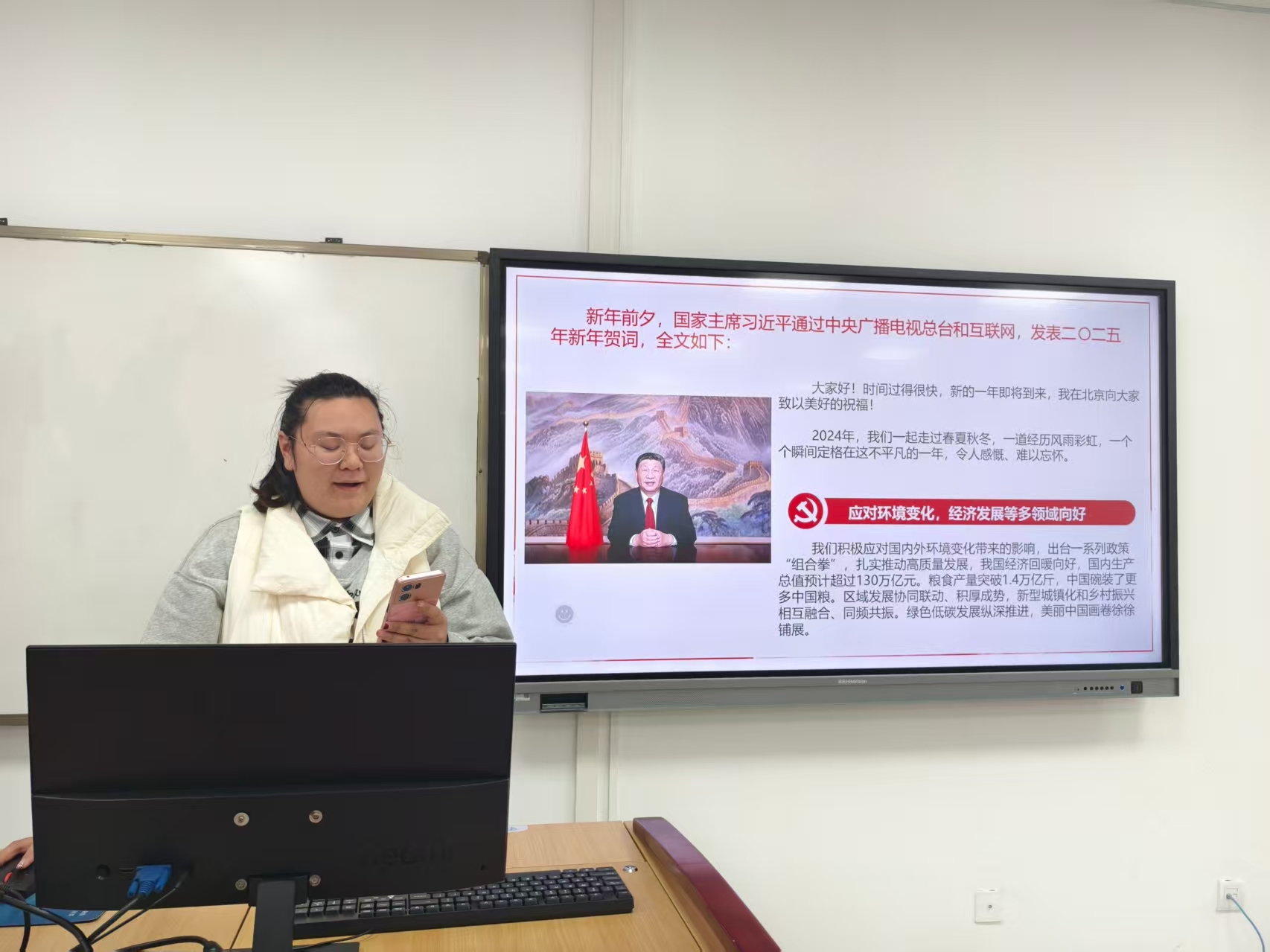 本科2022级传播1班团支部组织支部团员青年学习了习近平主席二〇二五年新年贺词和《进一步全面深化改革中的几个重大理论和实践问题》,班长程楚棋带领全体团员研读贺词和文章内容,引导大家深刻领会其中蕴含的精神内涵。“梦虽遥,追则能达;愿虽艰,持则可圆”,专题学习会激励全体团员青年在中国式现代化的建设征程中挺膺担当,为实现个人梦想和国家发展目标不懈奋斗。