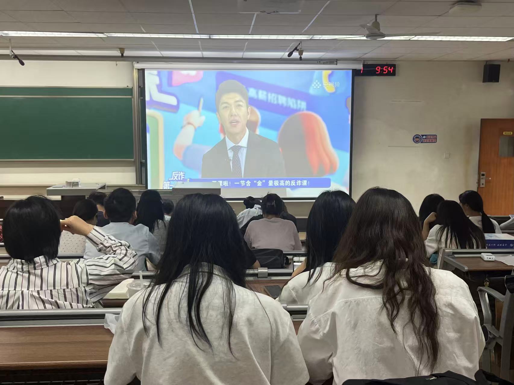 最后,同学们收看了2025年秋季“大中小学生反诈大讲堂”。讲堂通过真实案例和数据,剖析了当前高发的电信网络诈骗类型与防范技巧,为新生带来了一堂实用、深刻的安全教育课,增强了大家对财产保护和自我防范的重视。
