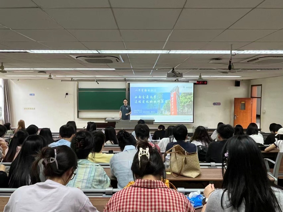 首先,西南交通大学研究生“红路”理论学讲团成员郦炫竹应邀为全体研究生新生开展了一场题为“八千里路云和月——我校迁校建校的曲折历程”的专题讲座。他从学校在山海关的办学源头讲起,细致梳理了交大在百余年来十八次迁校的过程中始终与民族命运紧密相连的办学历程,重点介绍了茅以升等杰出校友的事迹,以及学校在唐山、湘潭、平越、峨眉等地办学的艰苦岁月和卓越成就。郦炫竹强调,“竢实扬华,自强不息”是学校宝贵的精神财富,激励着一代代交大人扎根祖国大地、服务国家建设。
