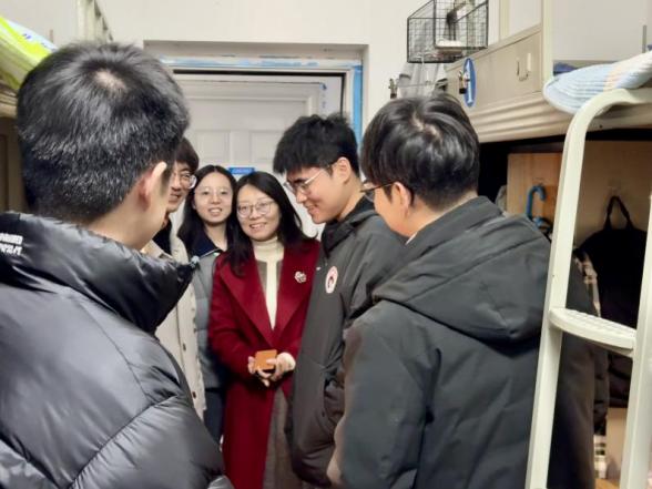 走访期间,陈曦轶副书记与同学们亲切交流,细致关心大家的生活适应情况、学业进展与未来规划,对于同学们在成长发展中遇到的困惑给予了针对性指导。走访中,老师们还强调了宿舍安全管理要求,提醒同学们遵守用电安全规范,保持宿舍环境整洁有序,养成规律作息与健康向上的生活习惯。