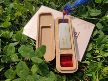 为学生准备的第三件礼物,是一方印章,这项礼物是硕士毕业生的专属纪念。印章为长方体形状,通体采用纯白类玉石材质,侧面是“二零二一澳门赌场老虎机