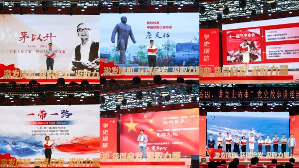 中铁五局校友代表和我校学生代表共同讲述了百年党史中的七个感人故事,通过富有感召力的文字和饱含深情的讲述,激励每一个与会人员从故事中解读时代内涵,传承红色基因,感悟为民初心。七个故事,百种感动,万分深情。