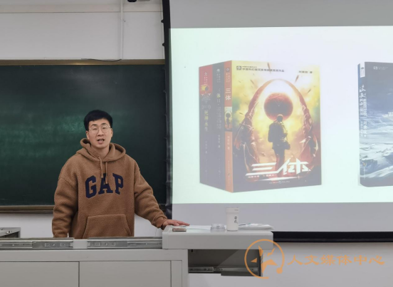 党委副书记郭立昌、中文系付品晶和周东升老师进入课堂旁听。余夏云老师本堂课为同学们带来的名家名篇是刘慈欣《诗云》。余老师结合本书主体内容,从人与宇宙的关系角度展示了本书的深刻内涵和作者独特的想象力。他还结合题目《诗云》,向大家介绍了中国传统文学以及诗的重要作用。从作者的写作手法上,余老师也向大家分析了了刘慈欣对于鲁迅先生作品的借鉴之处。21时05分,本堂课结束。