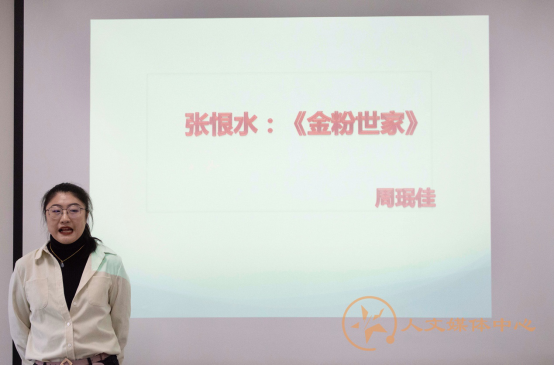 第六位进行展示的是来自中文系的周珉佳老师,她首先深度分析张恨水《金粉世家》的女性形象,再结合当时社会的大背景,肯定了《金粉世家》在通俗文学中的重要地位。