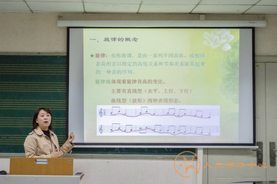 刘柳老师则展现了《音乐与人生》通识课的教学方法与实践,通过介绍旋律的概念、旋律线及其表现形态、旋律组合等内容和采用互动研讨、名言诵读等形式,寓教于乐的讲解了旋律与人生沉浮的关联。