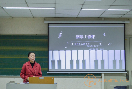 随后,王彦力、刘蕊两位老师向评委和观众展示了自己的教学方式和特色。在教学中,她们注重与同学们的交流和互动,通过细节分析和示范讲解,让学生们在掌握专业技能的同时获得更多的知识。其中,王彦力老师介绍了钢琴曲肖邦《第三叙事曲》的作品分析和艺术特色及演奏处理;而刘蕊老师则在介绍古曲《高山流水》的背景、意境分析和演奏重点的同时采用了全新的演奏形式,老师为同学配奏,使学生得到更好的演奏体验。