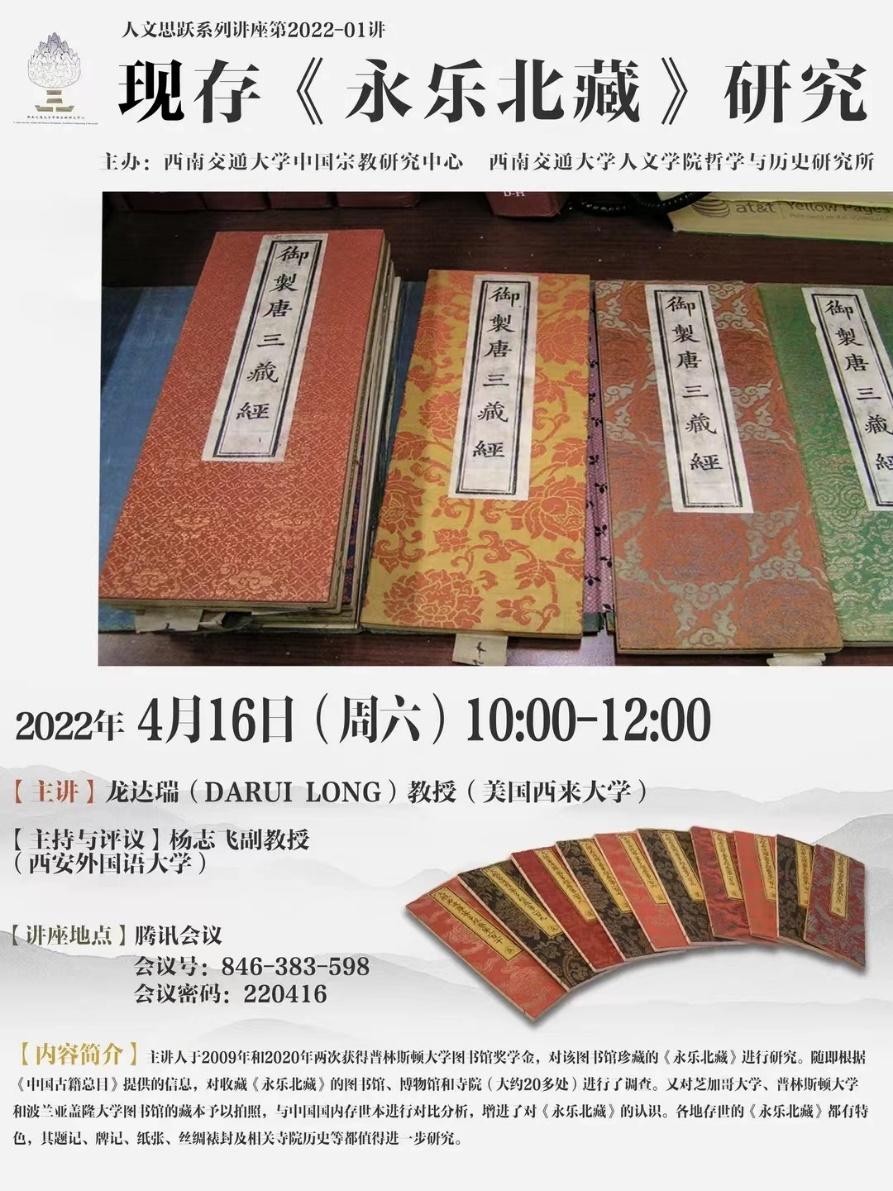 北京时间2022年4月16日10:00——12:40(美国加州时间4月15日19:00——21:40),西南交通大学中国宗教研究中心与澳门老虎机-澳门赌场老虎机