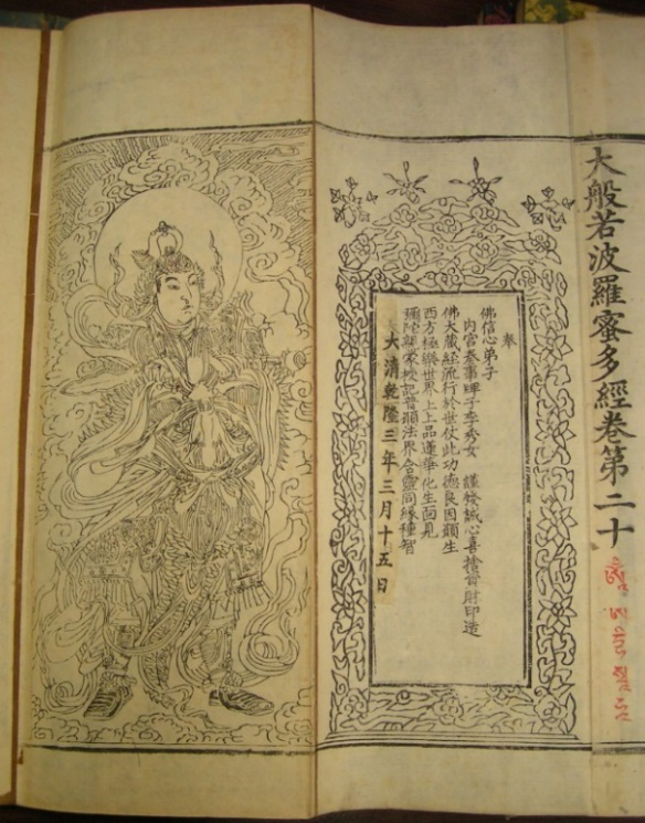 2.重庆图书馆藏《永乐北藏》。龙教授发现该馆所藏《北藏》原本收录的“色贻厥嘉猷勉”函钱谦益《首楞严经疏解蒙钞》六十卷,有注文“此六个字系钱谦益着前清奉旨抽毁”,又有“大清康熙四十五年三月十八日重修”的刊记,再结合《北藏》卷首的明神宗“皇帝敕谕”已经删去了飞龙、祥云等图案,故认为该馆所藏《北藏》为清康熙四十五年刷印。