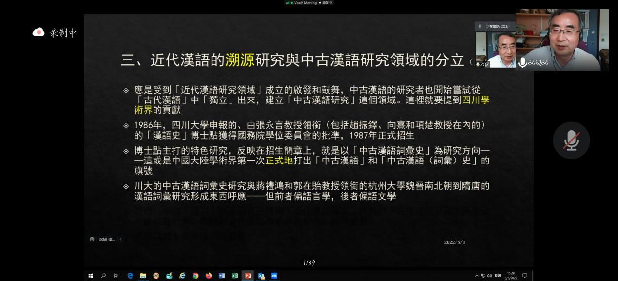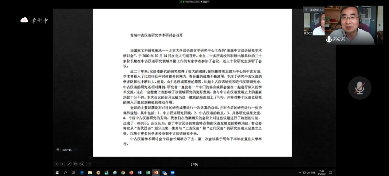 沿着之前的线索,朱教授结合自身研究经历,详细梳理了与中古汉语研究相关的两个问题。为与会师生讲解了近代汉语溯源研究与中古汉语研究分立的原由和发展历程,并介绍了中古汉语溯源研究与佛教汉语研究的关系。