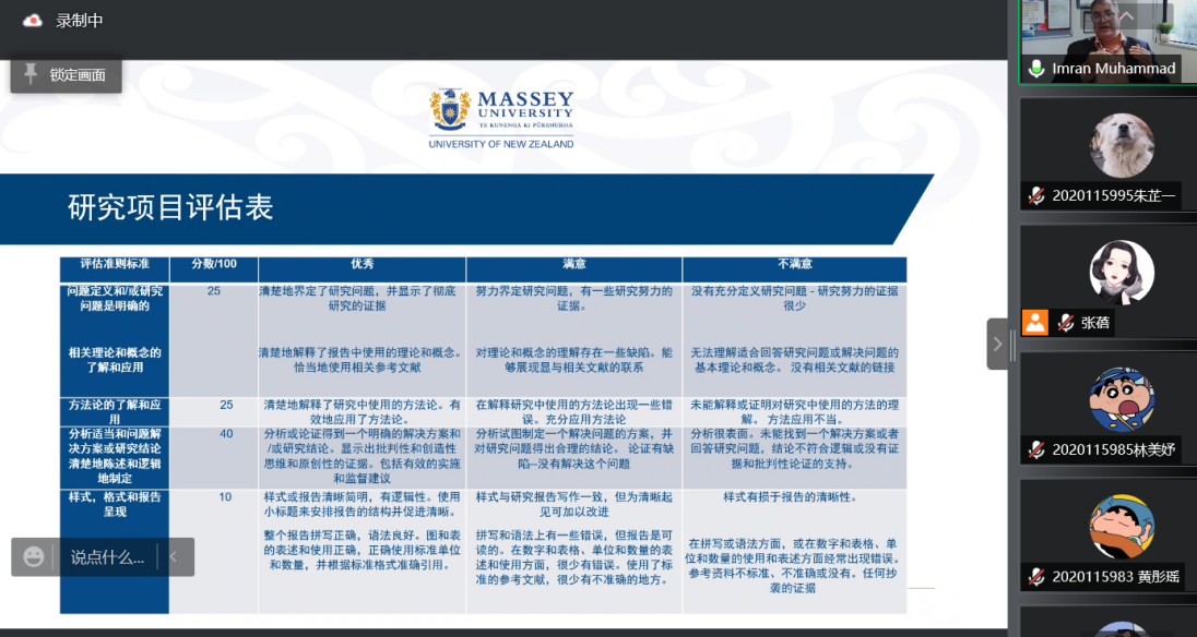 之后,Dr.Imran就研究的具体方法展开介绍,如研究问题的陈述、研究问题的目标、文献综述、研究方法的设计、研究数据和分析等。Dr.Imran特别强调做研究应具备批判性思维,批判看待前人的相关成果,对我们进行研究工作具有重要的意义。