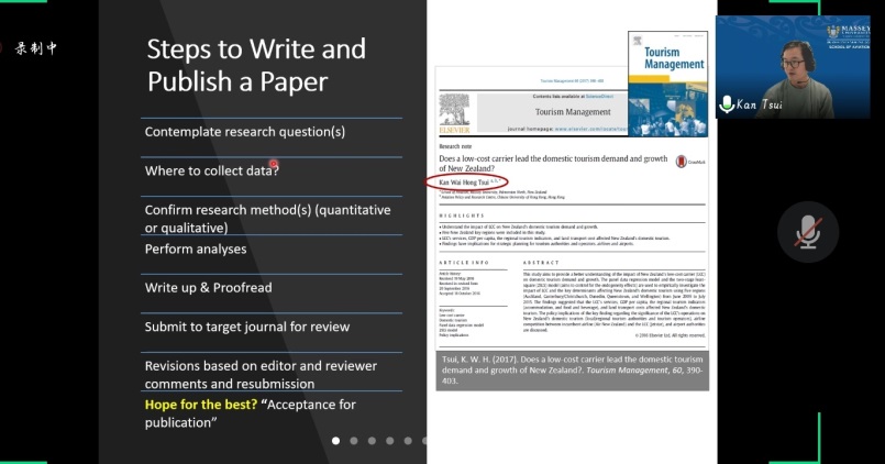 Kan Tsui副教授做主讲人,西南交通大学中文系教授汪启明做主持人的学术讲座在线上展开。本次讲座以“如何在知名期刊上发表文章”为主题,Dr.Kan Tsui全程用英语讲解,汪馨宁承担翻译工作,西南交通大学师生以及相关校外专家、学者等百余人参与互动。