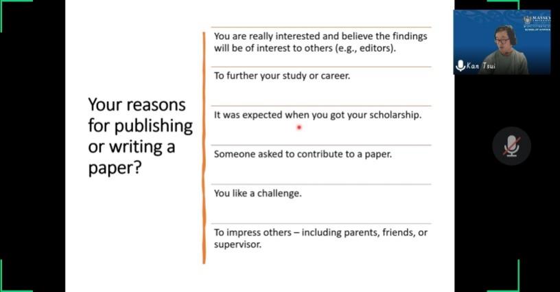 针对同学们在论文写作中可能遇到的困难,Dr.Kan Tsui详细列举了关于论文写作和在期刊上发表论文的几个重要影响因素,包括论文的要素、文献来源、论据支撑、获取目标期刊的回复等。Dr.Kan Tsui将论文要素分为几个大的板块,向大家逐一详细讲解需要注意的地方,这些信息能够帮助同学们进一步了解如何优化论文质量,为同学们的论文提升指明方向。
