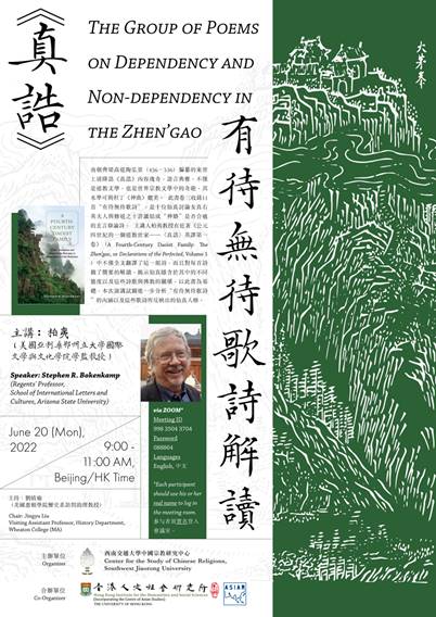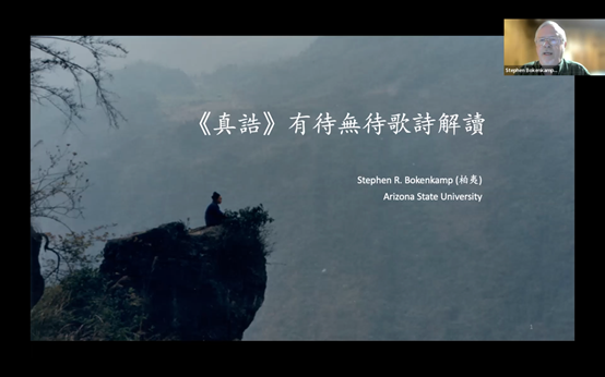 学监教授柏夷(Stephen R. Bokenkamp)先生通过ZOOM视频会议室举行线上讲座,讲座主题为“《真诰》有待无待歌诗解读”。本次讲座由美国哈佛大学博士、惠顿澳门老虎机