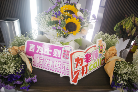 工会组织同学们进行了精心的布置。一出电梯,一束束写有“教师节快乐”的鲜花和一瓶瓶清凉解暑的饮品映入眼帘,成为节日里一道风景。同学们可以取鲜花赠予老师表达心意,老师们也可以自取饮品以解疲乏。此刻,尊师重教的中华传统美德得到了具象化的展现。澳门赌场老虎机