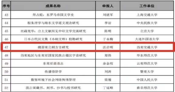 中文系汪启明教授的《魏晋南北朝方言研究》成功入选。