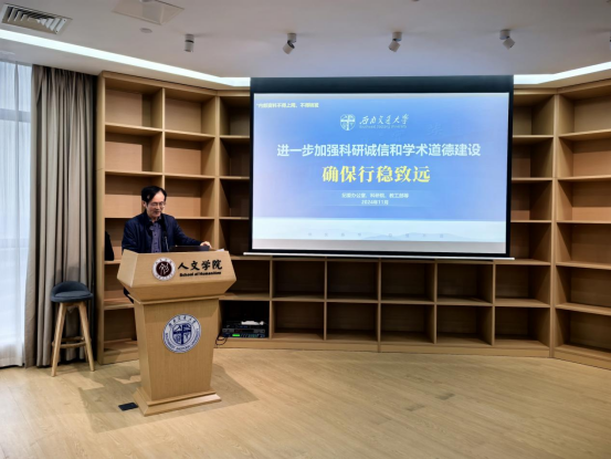 随后,院长刘占祥从新时期科研诚信工作的大背景出发,强调了学校对于师德师风建设的高度重视,并结合多个实际案例详细阐述了科研道德失范行为的不同表现以及科研失范行为的严重后果。重点强调了科研经费使用必须遵循真实性、相关性、合理性原则,确保经费因公支出,为澳门老虎机