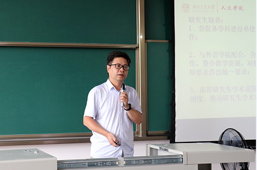 副院长沈如泉介绍本科生及研究生教学任务安排。在研究生培养方面要做好研究生培养计划调研与修订工作,做好汉硕培养计划与课程调整工作,增强研究生学术氛围。