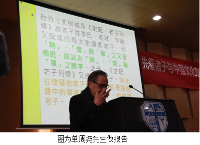 著名经学家、被誉为“香港经学第一人”的香港大学教授单周尧先生做了题为《单氏与<老子>作者问题管窥》的报告。单教授反驳了单氏家族与《老子》一书有关的观点,并通过翔实地考辩,梳理了老子作者问题的争论史,认为《老子》的作者当为老聃,司马迁《史记》的记载可信。