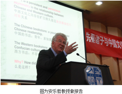 著名国际汉学家、道教史专家、香港中文大学劳格文教授,做了题为’’Social and Linguistic Revolution in Early Chinese Philosophy” 的报告。劳格文教授指出,先秦哲学发生了社会与话语方式的革命。孔子是弹性的、平衡的,孟子是刚性的,老子是弹性的。这种对先秦哲学史的解读方式令人有耳目一新的感觉。