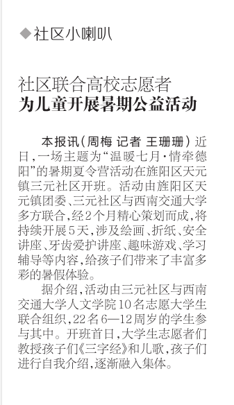 3、获得媒体报道,三下乡成果丰硕。各队伍认真进行三下乡实践,活动成效显著,获得当地媒体的报道宣传,德阳支教队伍获得《德阳日报》,《德阳晚报》的多次报道,扎染队伍获得中国青年网、四川省青年志愿者微博、自贡共青团微博报道。2018年9月20日,澳门老虎机