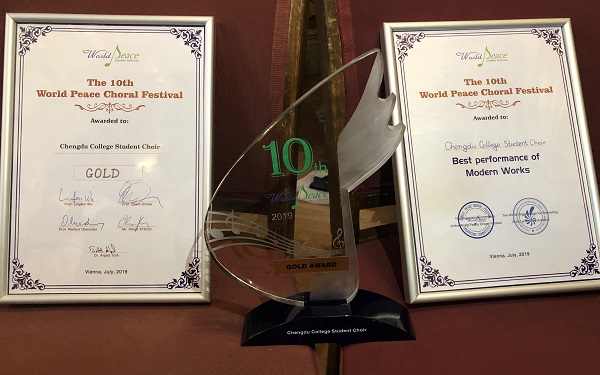 、四川师范大学、西华大学和成都大学声乐专业的同学共同组成了成都市大学生合唱团,前往“世界音乐之都”维也纳参加第十届世界和平合唱节,并于当地时间7月28日,以优异的表现荣获本次合唱节金奖和最佳现代作品演绎奖。