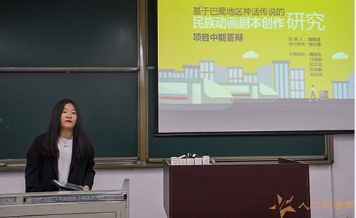 在传播专业答辩组,同学们研究了基于巴蜀地区神话传说的民族动画剧本创作研究”“西南交通大学招生宣传渠道研究及效果分析”“以《声入人心》为例看小众文化的编码与解码”“西南交大本科生对电商推荐功能的态度研究”等富有价值的课题。答辩人将其分为项目简介、主要进展及结果、下阶段进度安排、存在的问题及说明四个部分进行展示。老师们针对抽样方法、问卷调查与研究课题之间的主题差异等方面的问题提出了进一步的修改意见。
