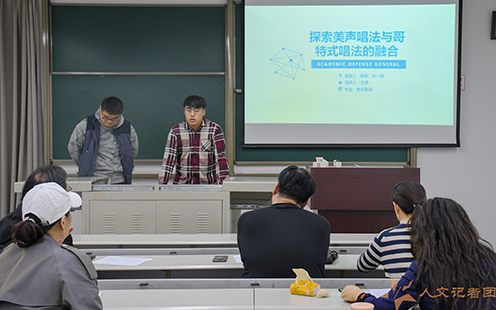 在音乐专业答辩组,答辩分为项目特色和创新点、项目进展和成果、收货与体会三部分进行阐述。评审老师们对每个小组的答辩进行了评价,在持肯定态度的同时也对答辩过程中涉及专业性不足的问题及时作出了详细的解释。