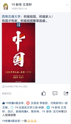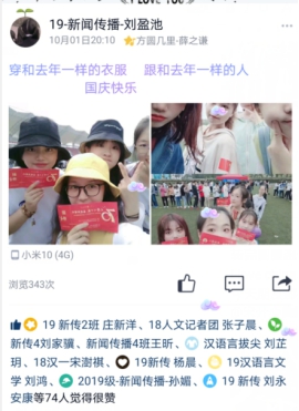 2019级汉语二班、三班、2018级广告二班、2020级新传一班等团支部持续组织开展“坚定理想信念,把我时代机遇”等爱国主义教育交流活动,全院持续保持爱国主义教育学习热潮。