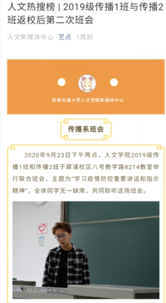 2019级传播一班和二班在X8214举行2019级传播系联合班会,集中学习“学习疫情防控重要讲话和指示精神”。