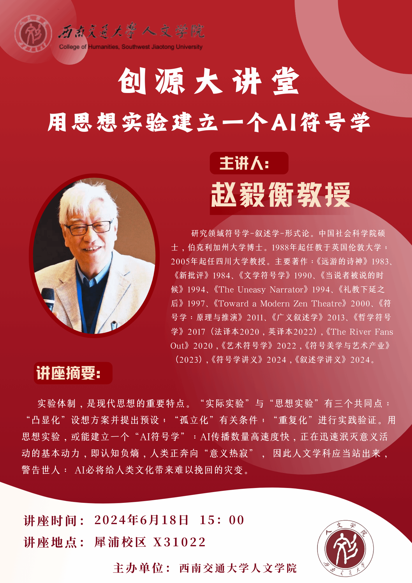 主讲人:赵毅衡(1943—),研究领域符号学-叙述学-形式论。中国社会科澳门老虎机