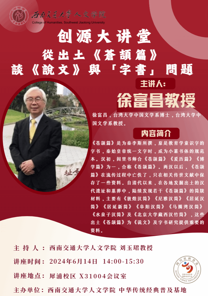 主讲人介绍:徐富昌,台湾大学中国文学系博士,台湾大学中国文学系教授。曾任台湾大学文澳门老虎机