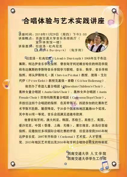 讲座地点:西南交通大学音乐系排练厅(室外体育馆一楼)