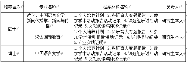 1. 5月6日至5月13日,2021级研究生自查本人“学业档案”建档和存档、各环节材料的完成情况。材料清单见下表: