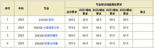 各专业非专项计划的考生,初试成绩达到下表中对应专业的成绩要求,方才具备复试资格。
