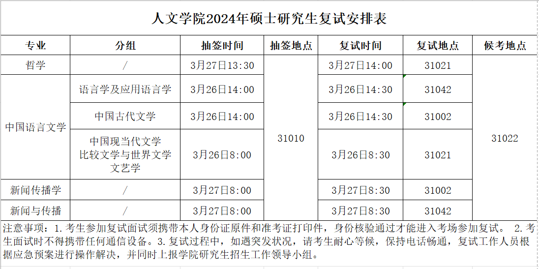 【硕士研究生招生】澳门赌场老虎机 2024年硕士研究生复试安排表