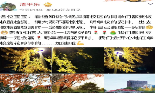 From the evening of nucleic acid detection to the sunny morning of the next day, teachers and students of the College of Humanities have been active in the circle of friends and WeChat group.